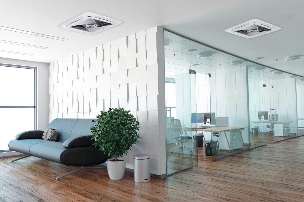 Progettati per integrarsi perfettamente in uffici e spazi commerciali, i climatizzatori a cassetta offrono un design elegante e un elevato rendimento, assicurando il massimo comfort senza compromettere l'estetica degli ambienti. Le unità a cassetta sono dotate di diffusori a quattro vie, che garantiscono una distribuzione uniforme dell'aria, e di sensori intelligenti che rilevano la presenza di persone per ottimizzare il funzionamento e ridurre i consumi.